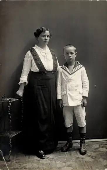Foto Ak Frau und ihr Sohn in Matrosenuniform