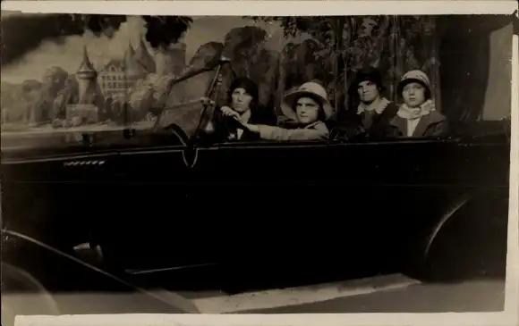 Foto Ak Frauen in einem Automobil in einem Fotostudio, 1931