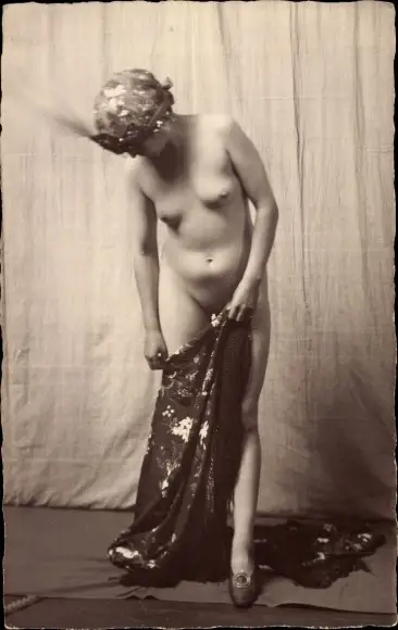 Foto Ak Frauenakt, stehende Nackte Frau, Busen