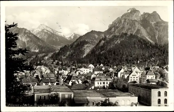 Foto Ak Füssen am Lech Allgäu, Neuschwanstein, Ort, Berge