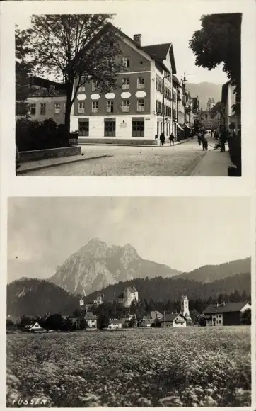 Foto Ak Füssen im Allgäu, Gesamtansicht, Berg, Straße