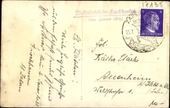 gelaufen als Landpost 1943, Ecken bestoßen, sonst guter Zustand