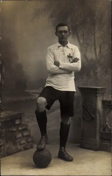 Foto Ak Ganzkörperportrait eines jungen Fußballers