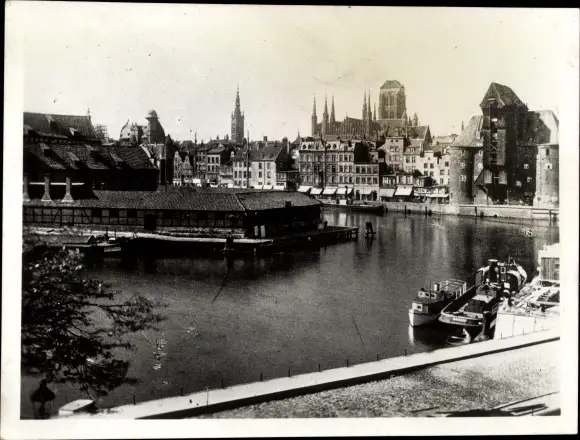 Foto Ak Gdańsk Danzig, Hafen, Langebrücke, Krantor