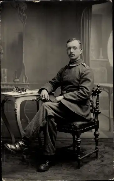 Foto Ak Gent Ostflandern, Deutscher Soldat in Uniform, Sitzportrait, I WK