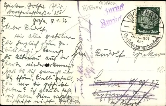 gelaufen 1936, Eckknick links unten, sonst guter Zustand
