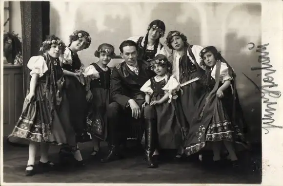 Foto Ak Gräfin Maritza, H. Heilau ? mit den kleinen Ungarinnen, Autogramm, 1924
