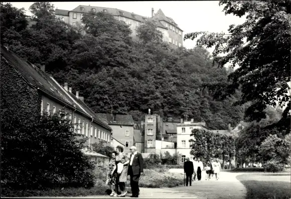 Foto Ak Greiz im Vogtland, Ortspartie, Schloss, Spaziergänger
