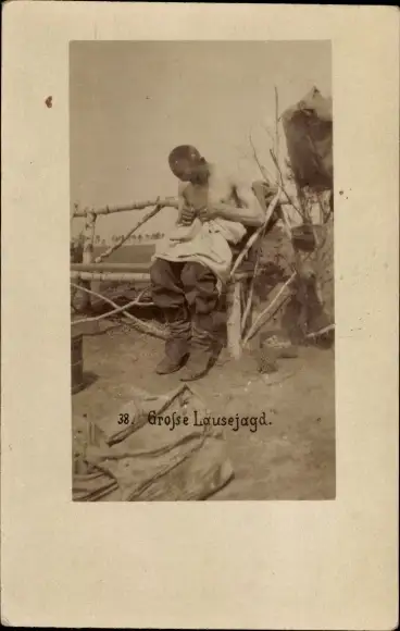 Foto Ak Große Lausejagd, Soldat sucht Läuse
