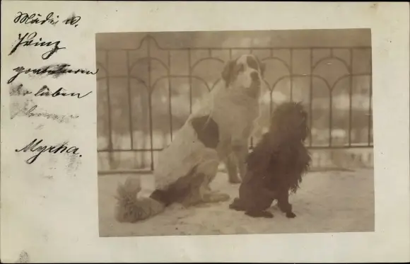 Foto Ak Großer und kleiner Hund, Hundeportrait