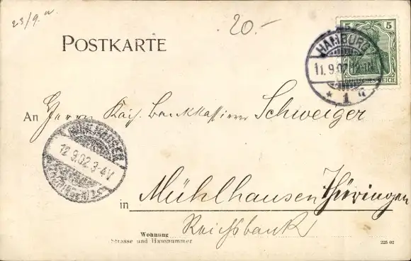Zustand, siehe Scan, gelaufen, 1902 - ca 14 cm X 9 cm