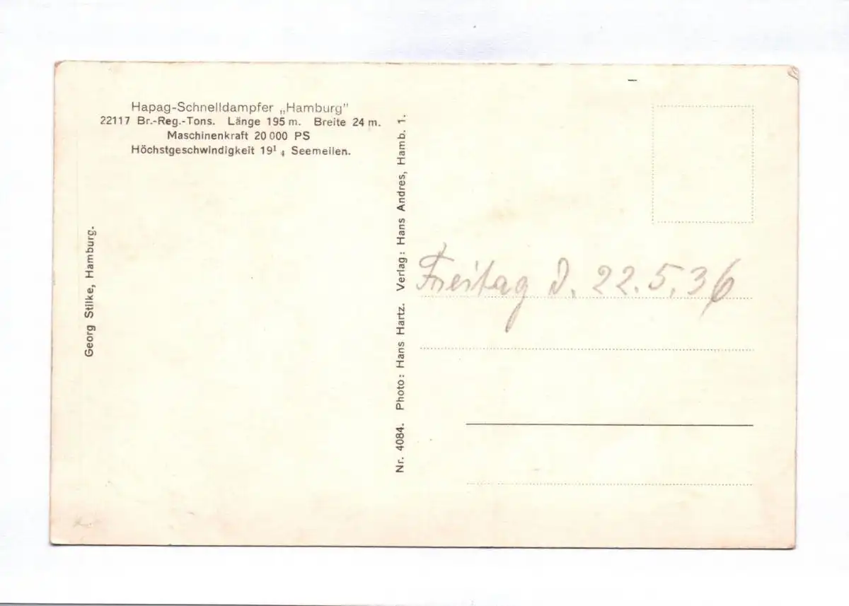 Foto Ak Hapag Schnelldampfer Hamburg 1936 Dampfschiff