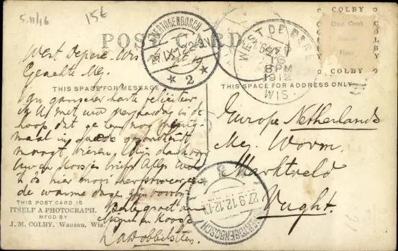 Zustand, siehe Scan, gelaufen, 1912 - ca 14 cm X 9 cm