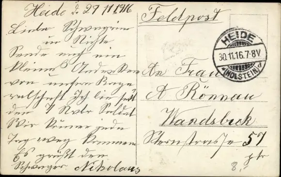 Zustand, siehe Scan, gelaufen, 1916 - ca 14 cm X 9 cm