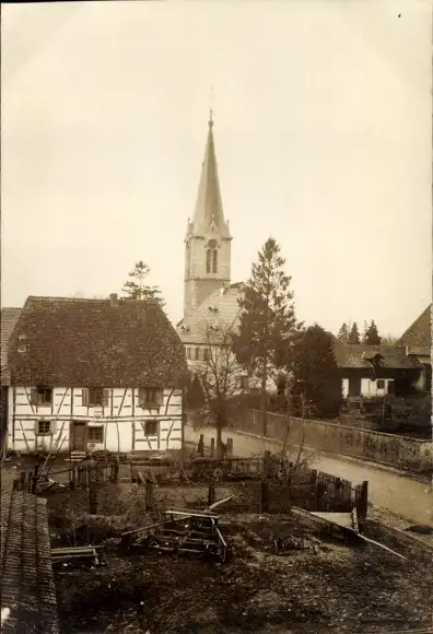 Foto Ak Heimsbrunn Elsass Haut-Rhin, Ortsansicht, Fachwerkhaus, Kirche