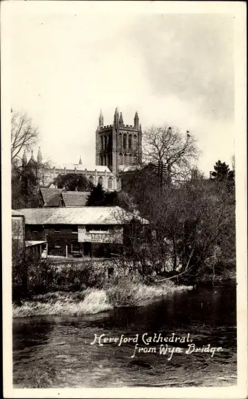 Foto Ak Hereford West Midlands England, Cathedral from Wye Bridge