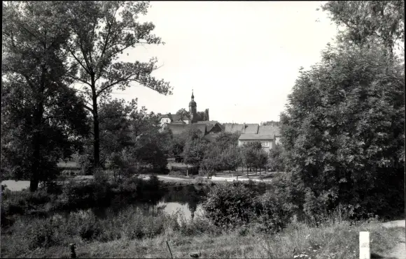 Foto Ak Hermsdorf in Thüringen, Panorama, Kirchturm