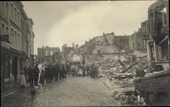 Foto Ak Herve Wallonien Lüttich, rue Potierue, Ruinen