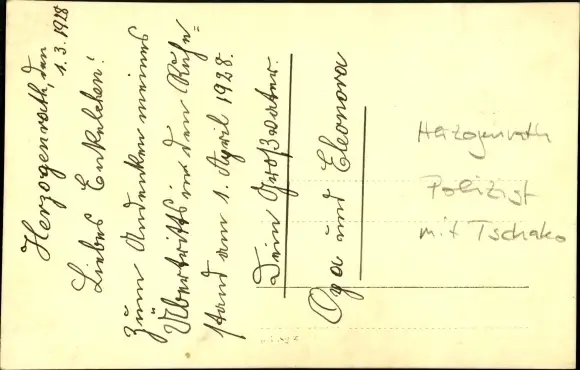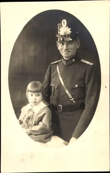 Foto Ak Herzogenrath, Polizist in Uniform mit Tschako, Enkelin Eleonora, 1928