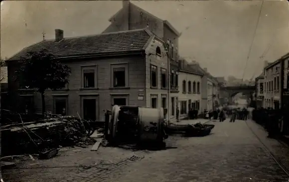 Foto Ak Herzogenrath, ehem. Hauptstraße Ecke Eygelshofener Str., Straßenbahnunfall