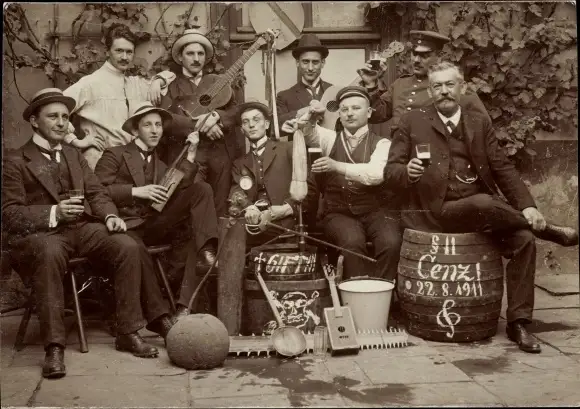 Foto Ak Höxter an der Weser, Musiker, Gruppenbild, Musikinstrumente, Gitarre, Fass