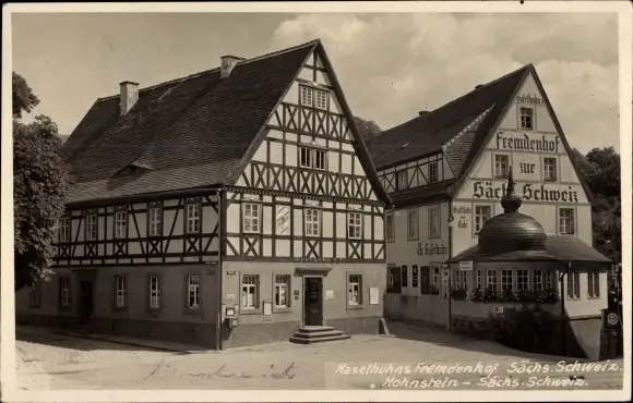 Foto Ak Hohnstein Sächsische Schweiz, Haselhuhns Fremdenhof Sächs. Schweiz
