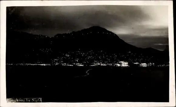 Foto Ak Hongkong China, Nachtaufnahme, Beleuchtung