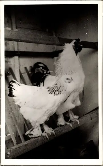 Foto Ak Hühner im Hühnerstall, Rassahuhn
