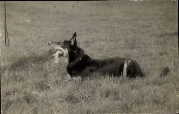 Foto Ak Hund mit heraushängender Zunge auf einer Wiese