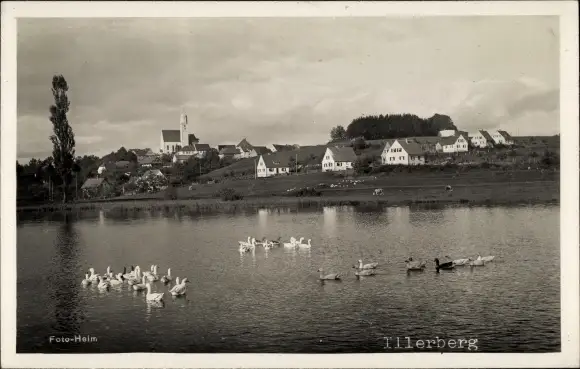 Foto Ak Illerberg Vöhringen Schwaben, Seepartie, Teilansicht Ort