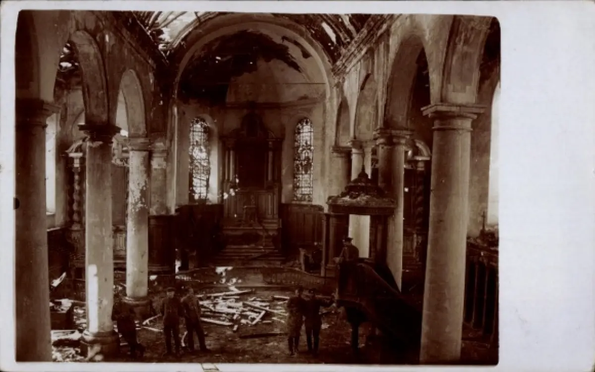 Foto Ak Innenansicht einer zerstörten Kirche, 1917