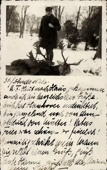 Foto Ak Jäger, Erlegter Hirsch, Jagdszene