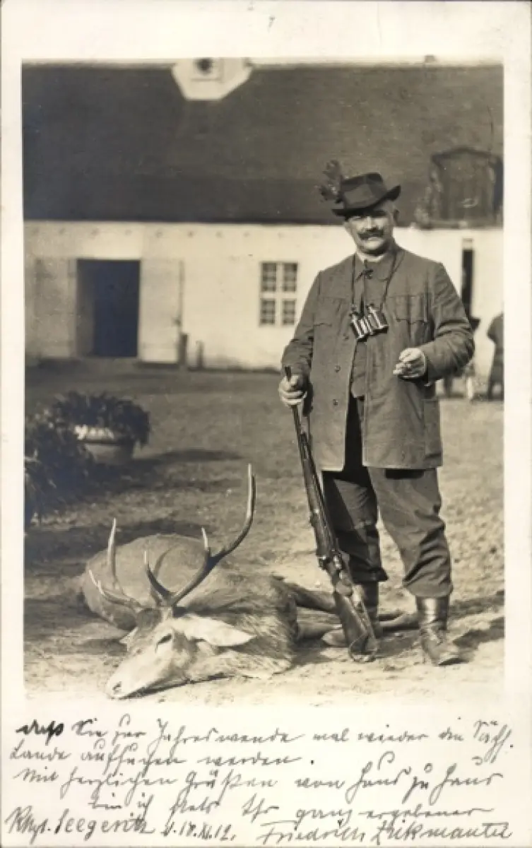 Foto Ak Jäger mit Gewehr, erlegter Hirsch