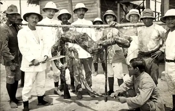 Foto Ak Jäger mit erlegter Schlange, Tragejoch