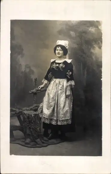 Foto Ak Junge Frau in bretonischer Tracht, Porträt