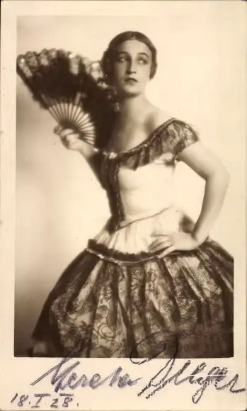 Foto Ak Junge Frau mit Fächer, Porträt, Autogramm