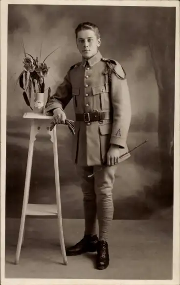 Foto Ak Junge in Uniform, Porträt, Blumen