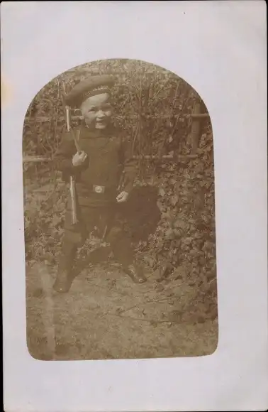 Foto Ak Junge in Uniform mit Gewehr, Portrait
