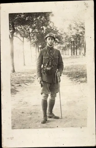 Foto Ak Junger Mann in Uniform, Säbel, Fernglas