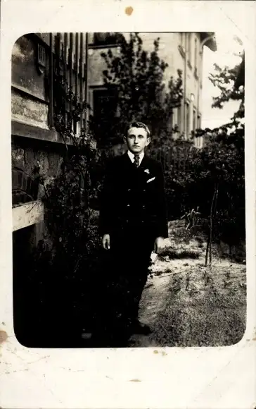 Foto Ak Junger Mann in einem Garten, Standportrait