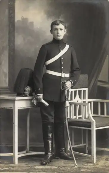 Foto Ak Junger Soldat in Uniform, Porträt, Säbel