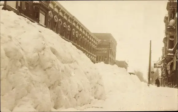 Foto Ak Kalamazoo Michigan USA, Straßenpartie mit Schneebergen, Winteransicht