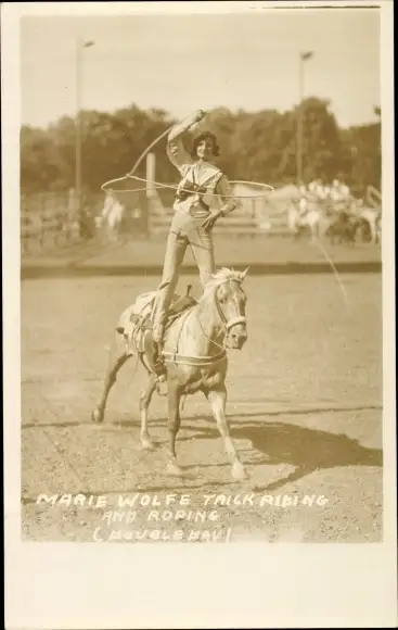 Foto Ak Kalifornien USA, Rodeo, Marie Wolfe Trick Riding and Roping, Doubleday