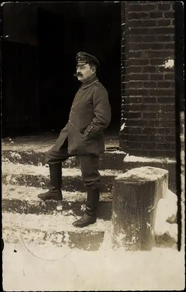 Foto Ak Kaliningrad Königsberg Ostpreußen, Soldat, Treppe, Schnee