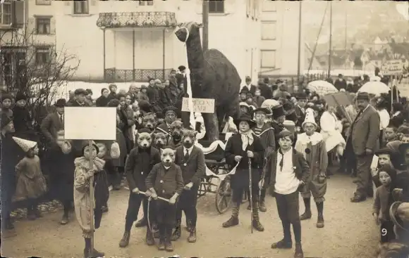 Foto Ak Karnevalsumzug, Fasching, Festwagen mit Kamel