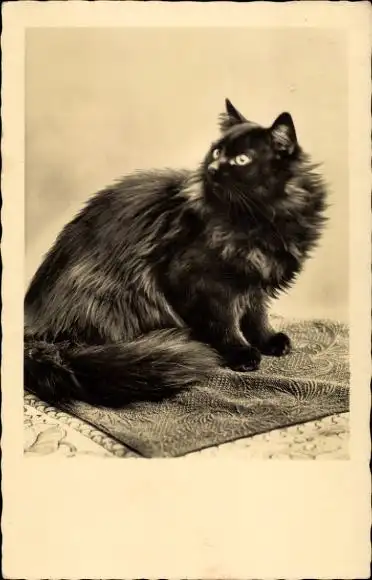Foto Ak Katze, Hauskatze, Tierporträt, Stoffdecke