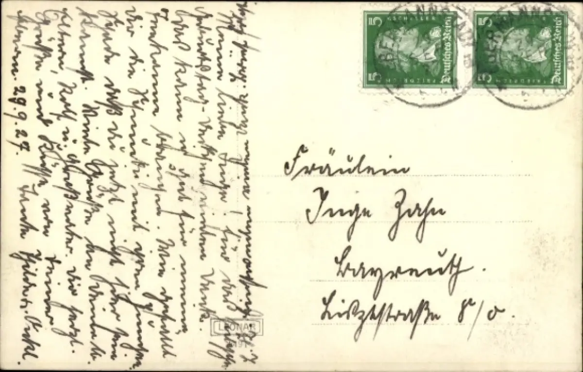 Zustand siehe Scan, gelaufen, 1927 - ca 9 cm X 14 cm