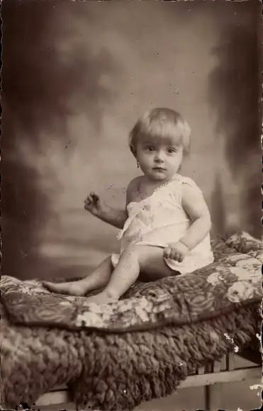 Foto Ak Kind-Porträt, Baby, Stoffdecke