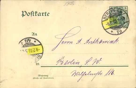 Zustand, siehe Scan, gelaufen, 1908 - ca 9 cm X 14 cm