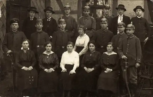 Foto Ak Kinder in Uniformen, Soldaten, Zivilisten, Gruppenbild